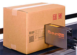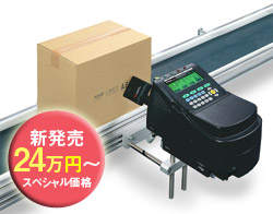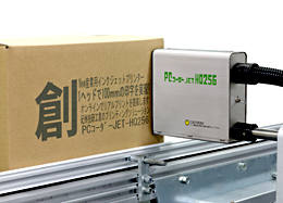 The above example is what the side of the cardboard box, was printed by one stroke in the JET HQ256. You can print on both sides at the same time if I use the 2 head. Other, Code39, NEW-7, EAN128 ITF, JAN, QR code of the two-dimensional code can also be printed bar code. “Talk of the bar code , refer to “. It may be represented in bar code in real-time processing, the date variable data, such as numbering. You can use a bitmap file read function, can be printed easily logo graphics. The character font, you can choose freely on a PC.